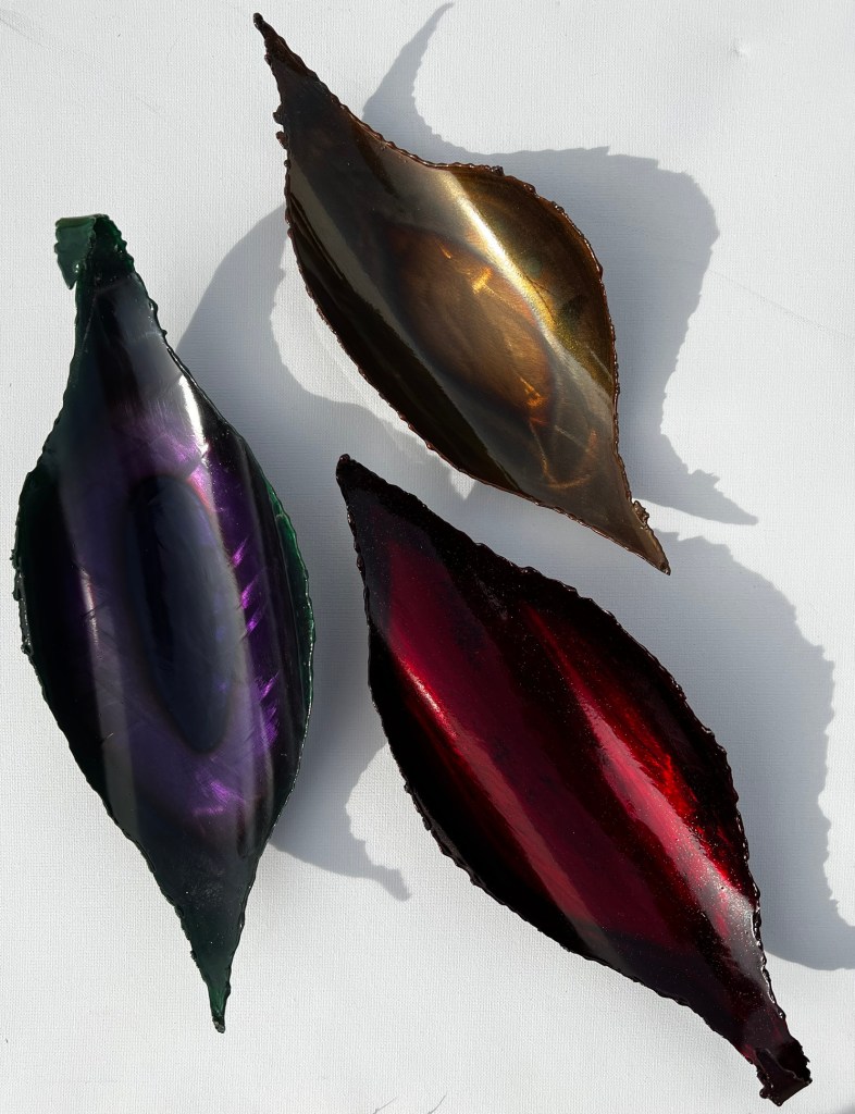 Whimsical decor for your home, these bowls are hand cut, shaped and powder-coated.