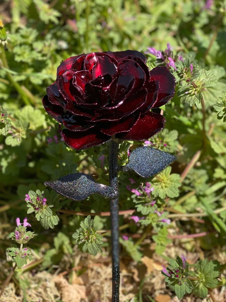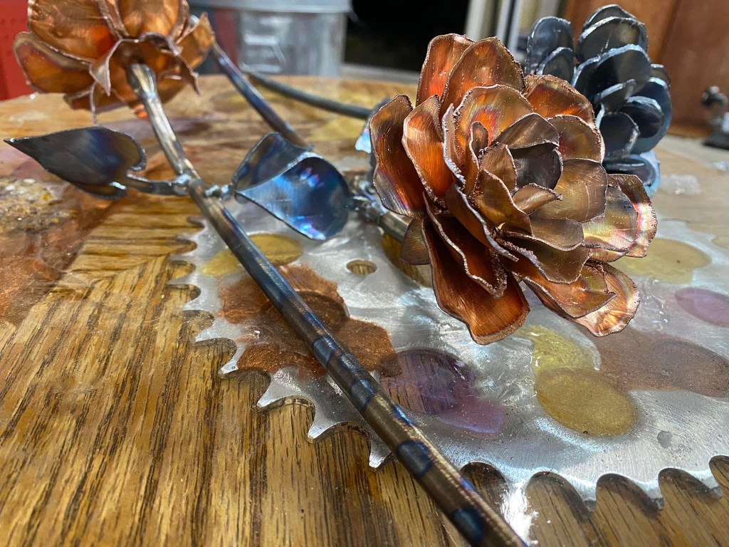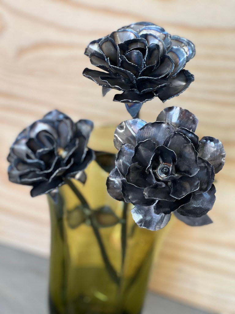 Each rose or flower is hand cut, welded and finished. No CNC here! Available in steel or copper. In raw form or powder-coated a custom color. Fantastic gift for birthdays, Mother’s Day, or anniversaries.